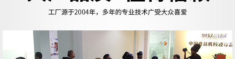 廣州旭眾食品機械有限公司是一家集科研開發(fā),生產(chǎn)設計,營銷服務為一體的現(xiàn)代化生產(chǎn)企業(yè)?,F(xiàn)代化生產(chǎn)車間,精湛制造技術,所產(chǎn)機械歷經(jīng)市場重重考驗,不斷贏得海內外客戶的贊譽。