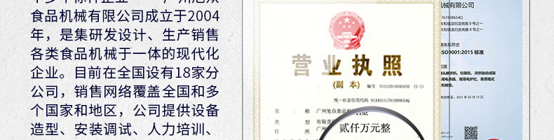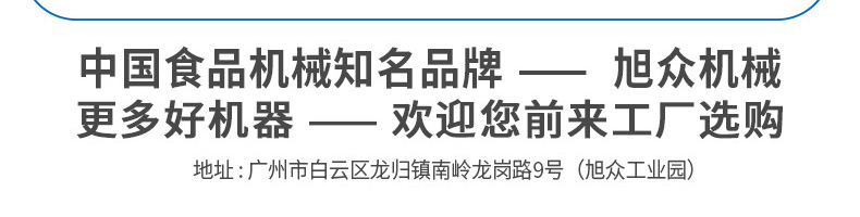 廣州旭眾食品機(jī)械有限公司是一家集科研開(kāi)發(fā),生產(chǎn)設(shè)計(jì),營(yíng)銷(xiāo)服務(wù)為一體的現(xiàn)代化生產(chǎn)企業(yè)?,F(xiàn)代化生產(chǎn)車(chē)間,精湛制造技術(shù),所產(chǎn)機(jī)械歷經(jīng)市場(chǎng)重重考驗(yàn),不斷贏得海內(nèi)外客戶(hù)的贊譽(yù)。