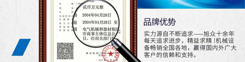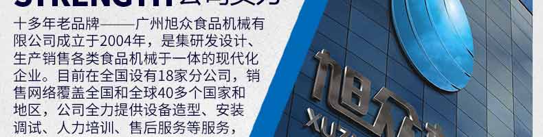 廣州旭眾食品機(jī)械有限公司是一家集科研開發(fā),生產(chǎn)設(shè)計,營銷服務(wù)為一體的現(xiàn)代化生產(chǎn)企業(yè)?,F(xiàn)代化生產(chǎn)車間,精湛制造技術(shù),所產(chǎn)機(jī)械歷經(jīng)市場重重考驗(yàn),不斷贏得海內(nèi)外客戶的贊譽(yù)。