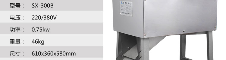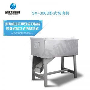 SX300B 臥式切肉機,臥式切肉機均采用雙滾刀結(jié)構(gòu),有臥式和立式兩種型式。各種款式切肉機原動力和刀梳、切肉部分的原理,結(jié)構(gòu)大致相同,都具有結(jié)構(gòu)緊湊,外形美觀、操作方便、效率高、耗電小、清潔保養(yǎng)容易、安全衛(wèi)生、切肉效果好等優(yōu)點。