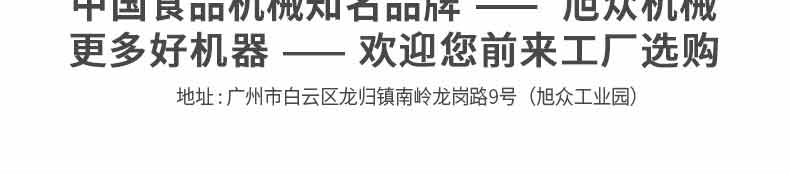 廣州旭眾食品機(jī)械有限公司是一家集科研開發(fā),生產(chǎn)設(shè)計,營銷服務(wù)為一體的現(xiàn)代化生產(chǎn)企業(yè)?,F(xiàn)代化生產(chǎn)車間,精湛制造技術(shù),所產(chǎn)機(jī)械歷經(jīng)市場重重考驗,不斷贏得海內(nèi)外客戶的贊譽(yù)。