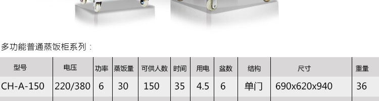 CH-A多功能普通蒸飯柜,適用于大米、面制品、肉類(lèi)、海鮮類(lèi)等。深受賓館、飯店、工廠(chǎng)、機(jī)關(guān)食堂、部隊(duì)、大專(zhuān)院校等單位的歡迎。